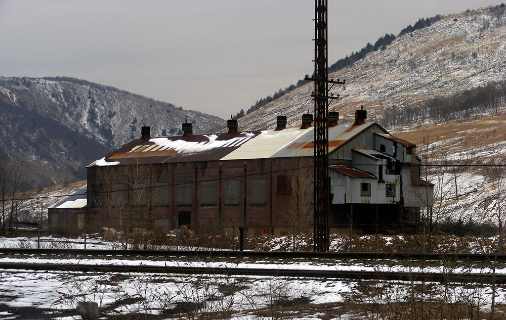 If we move north three miles up the road from from Slatington to Palmerton, then we can see another example of the crumbling of the once mighty industrial infrastructure of the United States. Now there is very little left of the former New Jersey Zinc factory west plant in Palmerton; the east plant, in the same town, is still working.