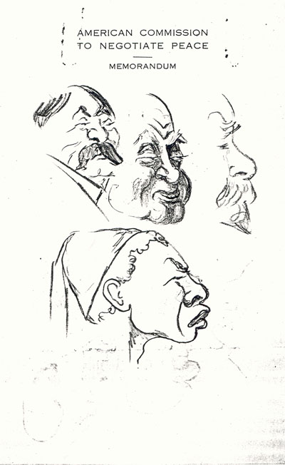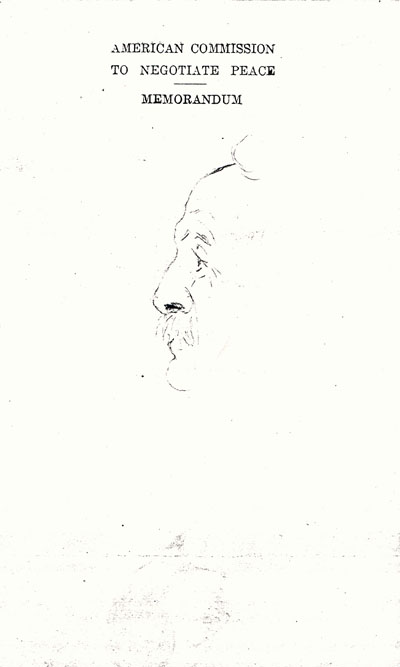US Secretary of State Robert Lansing (1864-1928) was an excellent artist. While spending his time in the many meetings of the Paris Peace Conference, Lansing would make pencil sketches of some of the participants. Some of these survive in his manuscript file at the Library of Congress (Lansing Papers, Manuscripts Division, Library of Congress). I have copied and included some